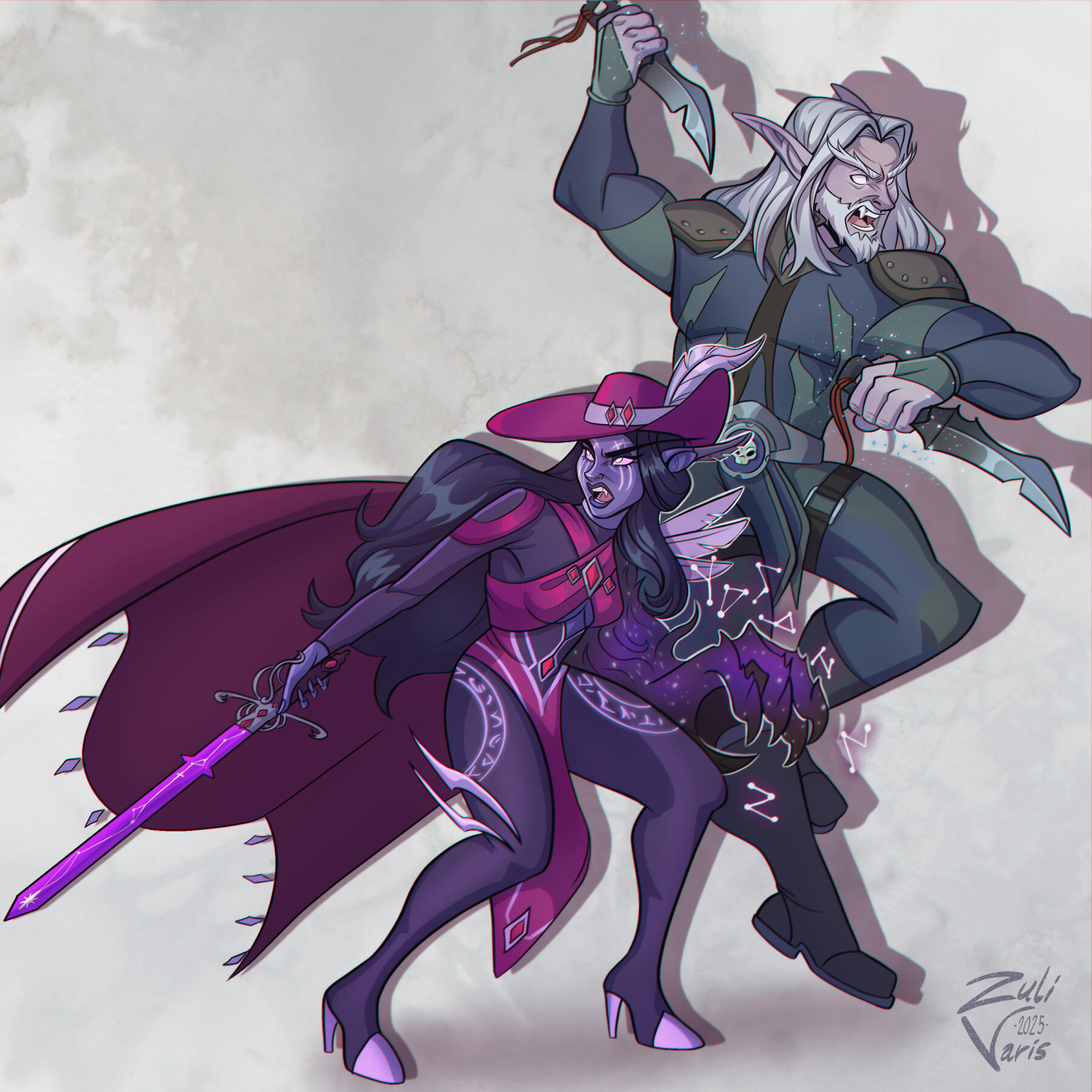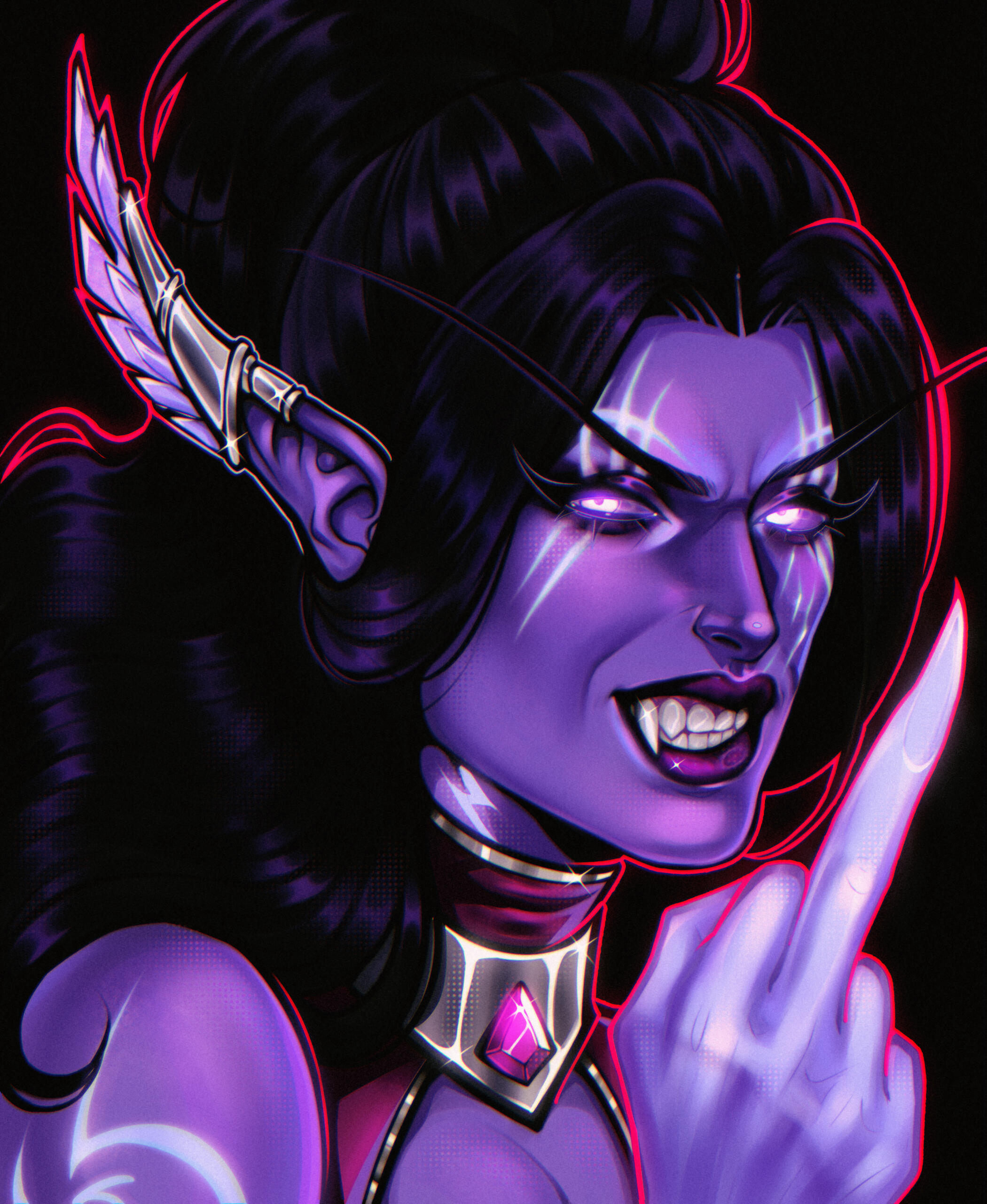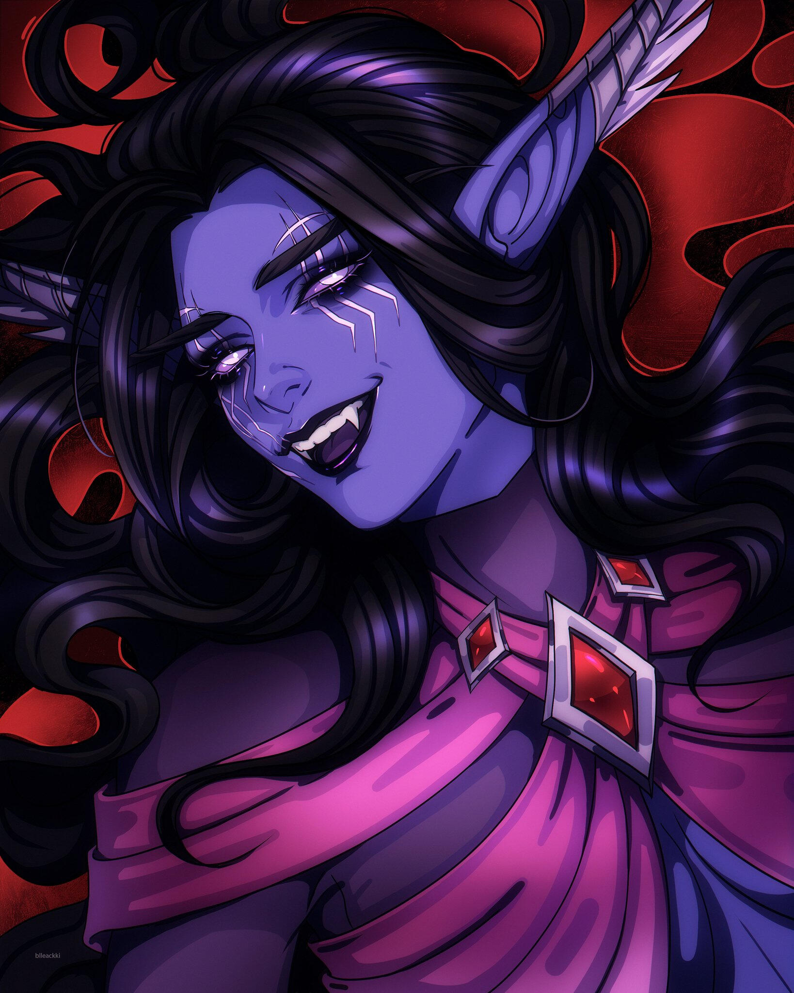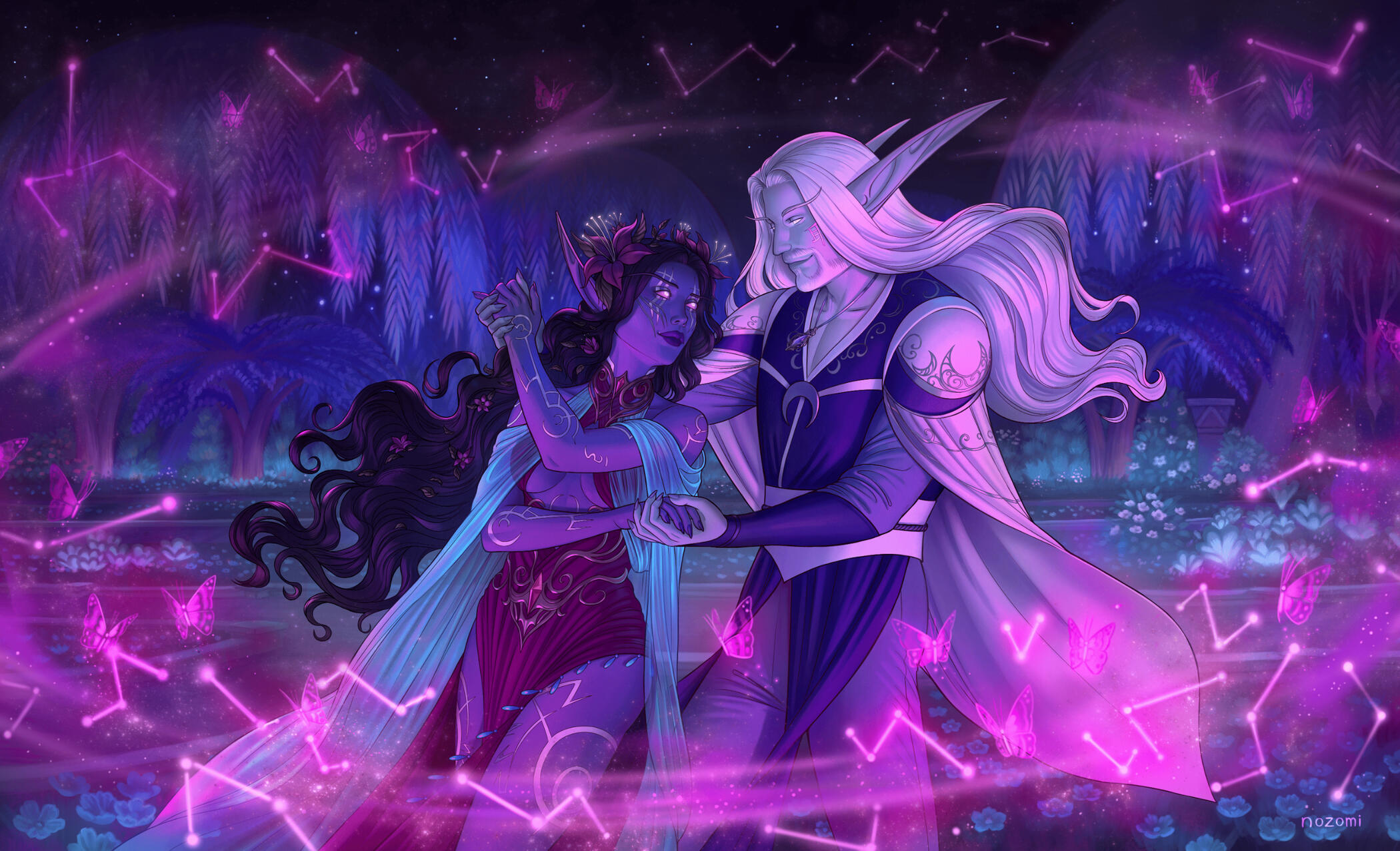 ☄️ Was alive pre-Sundering and part of military units that worked closely with the Rooksguard. She and her twin brother, Lysander, were known as the Twin Fangs of Nar'thalas during the War of the Ancients. Prior to becoming shal'dorei she had orchid pink skin and silver-blue eyes. Her surname at that time was Starfall.☄️ Graduate of Nar'thalas Academy. Top of her class at the time of graduation. Attended with her twin brother, Lysander, and childhood friend, Ilrion.☄️ For those who knew her pre-Sundering, she was mated to a kaldorei turned shal'dorei named Ilrion.☄️ Has a permanent residence in Evermoon Commons and has lived there for the past 10,000 years. She is known amongst her neighbors as Evermoon's Arcanist.☄️ Sells enchantments and inscriptions by commission in Evermoon Commons. Prices are always fair. She is willing to sell them while she's traveling too should someone voice the need for an enchantment. (If she discovers you are noble or Highborne, it is incredibly likely she will refuse to sell to you or price gouge you.)☄️ Was a very active member of the Nightfallen rebellion, though she went under the alias of a masked vigilante and anarchist called the Smiling Saber who wore a blue manasaber mask. She was notorious for torturing and butchering Elisande loyalists to extort them for information. Aside from assassinations, she also helped establish an underground arcwine distribution for citizens who needed it most. However, she was made halfway through the rebellion and imprisoned in Nighthold after being unmasked. At this point, her identity is public knowledge. Most native shal'dorei are aware that she is foul-tempered and does not like to be bothered or recognized for her part in the rebellion.☄️ The Smiling Saber existed before the rebellion and was infamous for being a spellthief who taunted and thieved from aristocracy in Suramar for thousands of years. Her identity was a mystery until her capture in Legion.☄️ Author of a series known as 'The Catspaw' which is a set of tomes that begin with basic and progress to advanced arcane instruction. They were intended for other lowborn elves in Suramar to have access to magic without need for a teacher and were distributed on a black market until the occupation of the Legion ended. They are now published with her name on them, where they were previously printed with no name, and can be purchased in any book stores in Suramar. They have been in circulation for about 1,000 years.☄️ Since the defeat of the Burning Legion, she has traveled Azeroth making star maps.☄️ An accomplished and published astromancy based spellblade. She is always willing to talk shop with other mages.