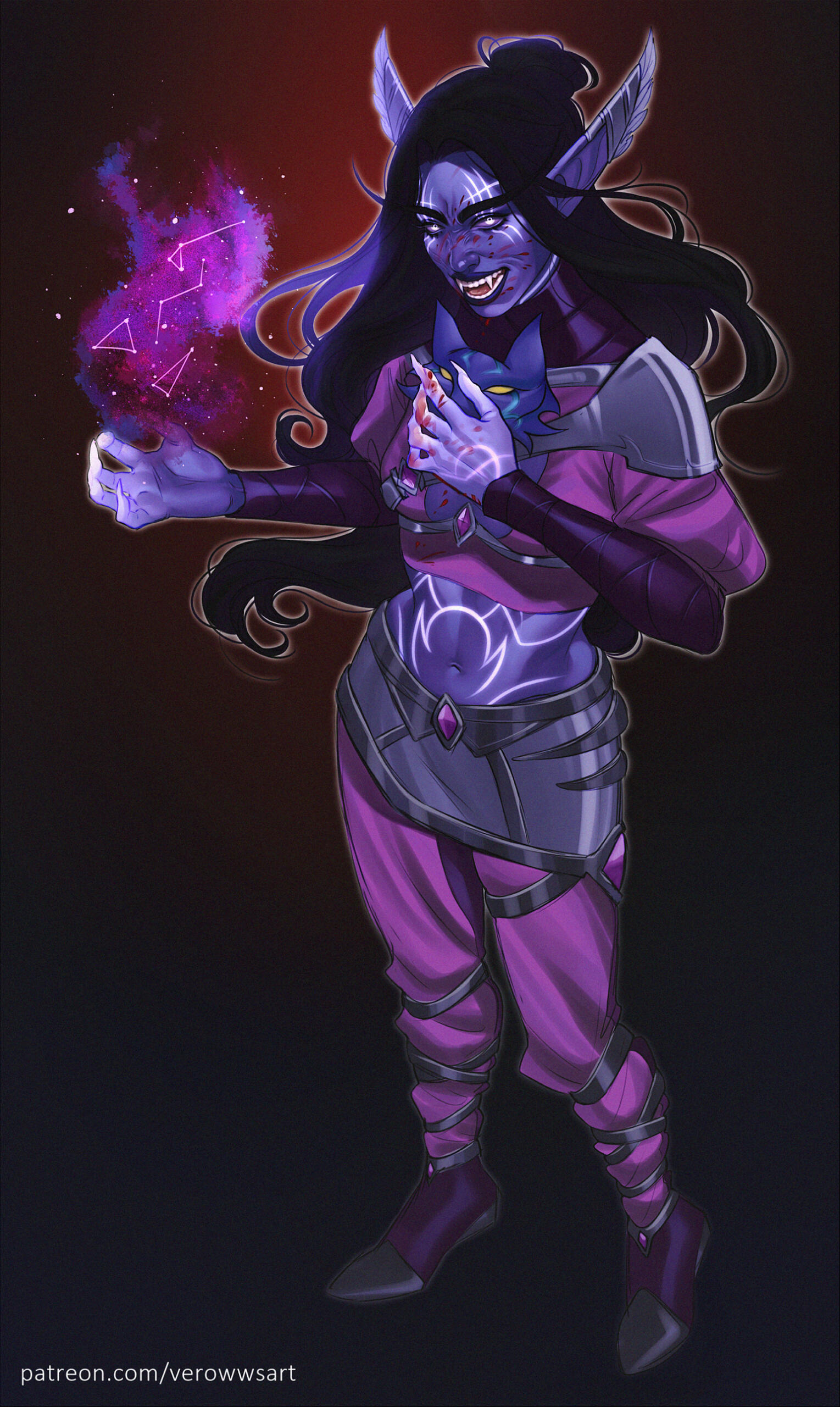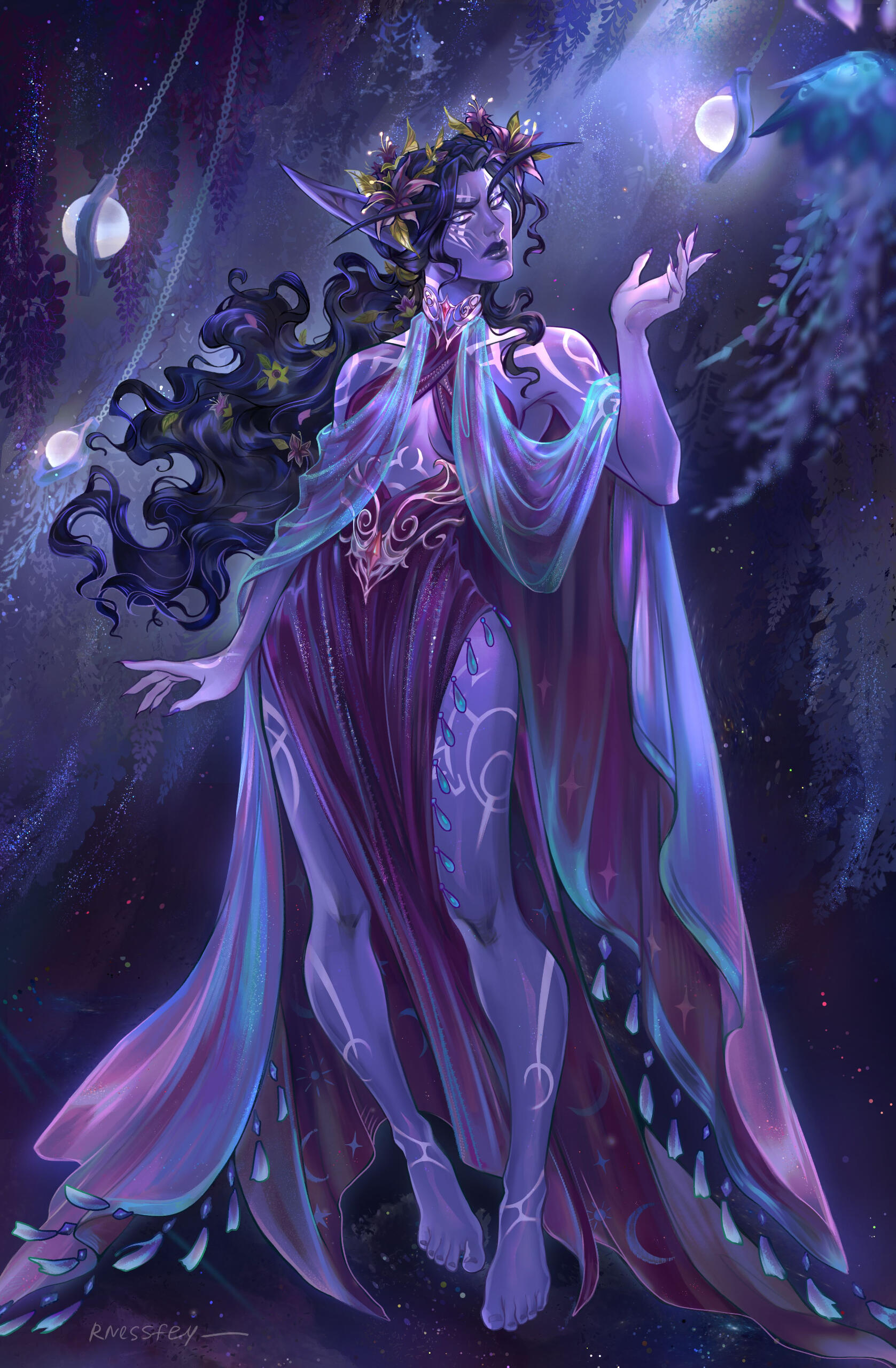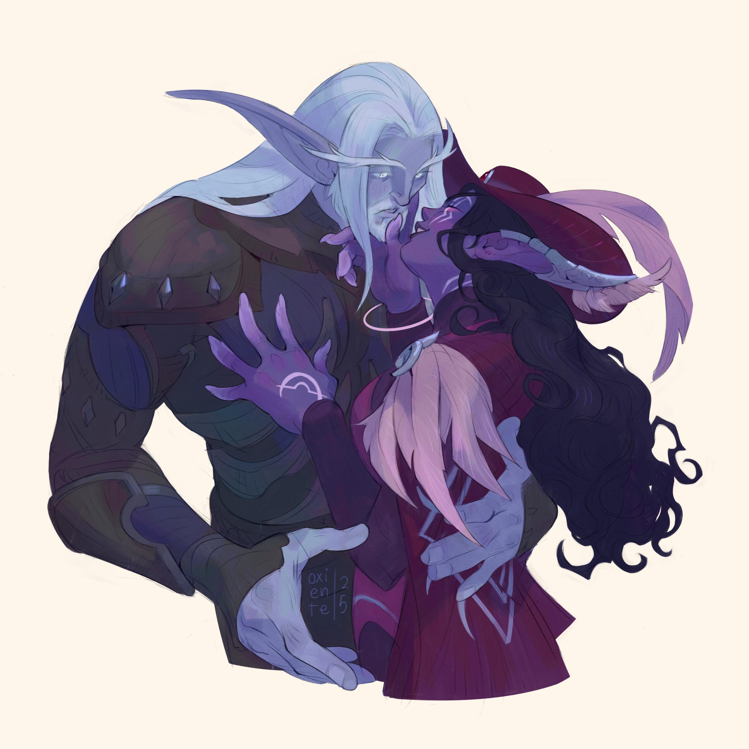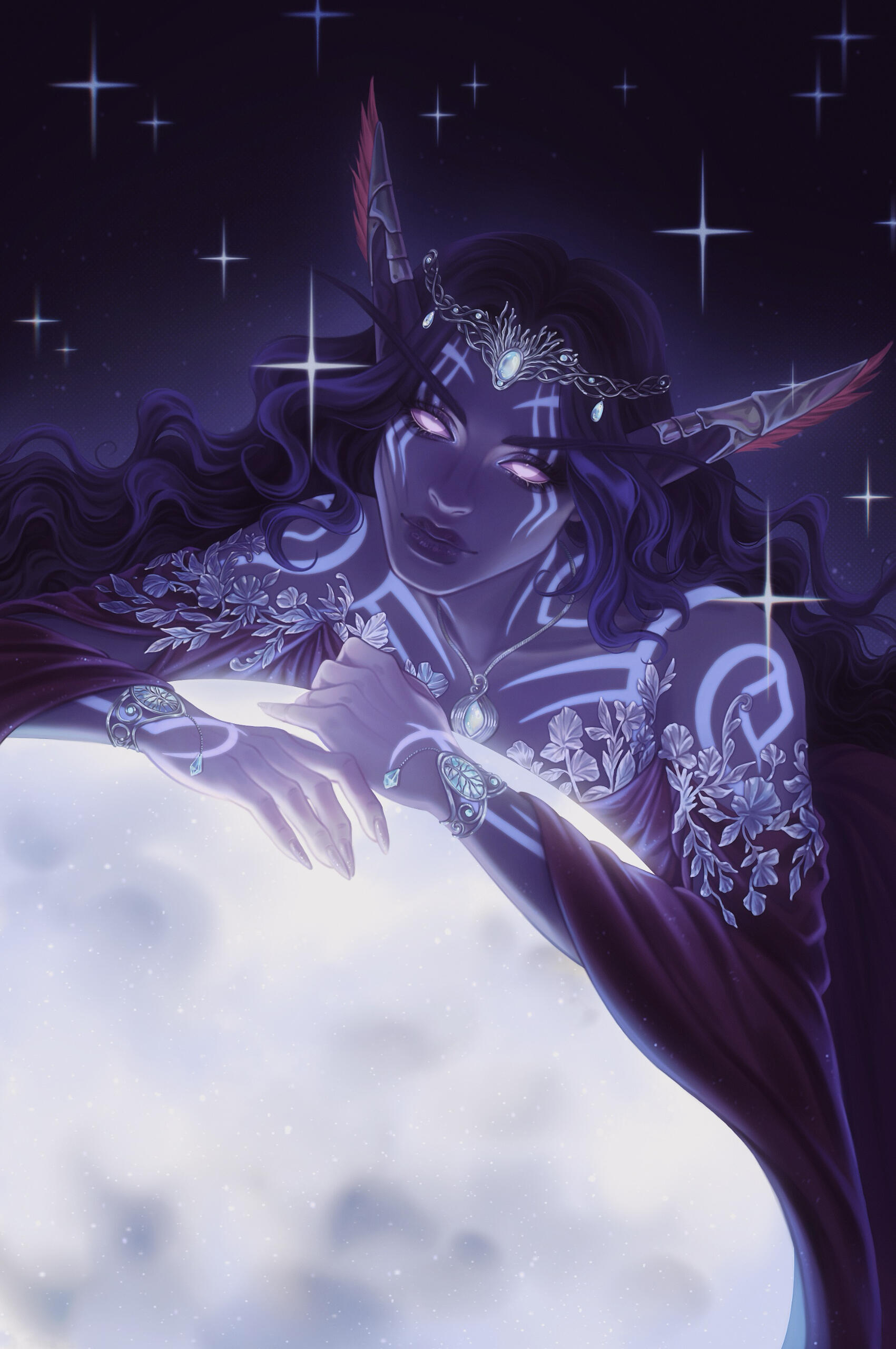 ☄️ Was alive pre-Sundering and part of military units that worked closely with the Rooksguard. She and her twin brother, Lysander, were known as the Twin Fangs of Nar'thalas during the War of the Ancients. Prior to becoming shal'dorei she had orchid pink skin and silver-blue eyes. Her surname at that time was Starfall.☄️ Graduate of Nar'thalas Academy. Top of her class at the time of graduation. Attended with her twin brother, Lysander, and childhood friend, Ilrion.☄️ For those who knew her pre-Sundering, she was mated to a kaldorei turned shal'dorei named Ilrion.☄️ Has a permanent residence in Evermoon Commons and has lived there for the past 10,000 years. She is known amongst her neighbors as Evermoon's Arcanist.☄️ Sells enchantments and inscriptions by commission in Evermoon Commons. Prices are always fair. She is willing to sell them while she's traveling too should someone voice the need for an enchantment. (If she discovers you are noble or Highborne, it is incredibly likely she will refuse to sell to you or price gouge you.)☄️ Was a very active member of the Nightfallen rebellion, though she went under the alias of a masked vigilante and anarchist called the Smiling Saber who wore a blue manasaber mask. She was notorious for torturing and butchering Elisande loyalists to extort them for information. Aside from assassinations, she also helped establish an underground arcwine distribution for citizens who needed it most. However, she was made halfway through the rebellion and imprisoned in Nighthold after being unmasked. At this point, her identity is public knowledge. Most native shal'dorei are aware that she is foul-tempered and does not like to be bothered or recognized for her part in the rebellion.☄️ The Smiling Saber existed before the rebellion and was infamous for being a spellthief who taunted and thieved from aristocracy in Suramar for thousands of years. Her identity was a mystery until her capture in Legion.☄️ Author of a series known as 'The Catspaw' which is a set of tomes that begin with basic and progress to advanced arcane instruction. They were intended for other lowborn elves in Suramar to have access to magic without need for a teacher and were distributed on a black market until the occupation of the Legion ended. They are now published with her name on them, where they were previously printed with no name, and can be purchased in any book stores in Suramar. They have been in circulation for about 1,000 years.☄️ Since the defeat of the Burning Legion, she has traveled Azeroth making star maps.☄️ An accomplished and published astromancy based spellblade. She is always willing to talk shop with other mages.